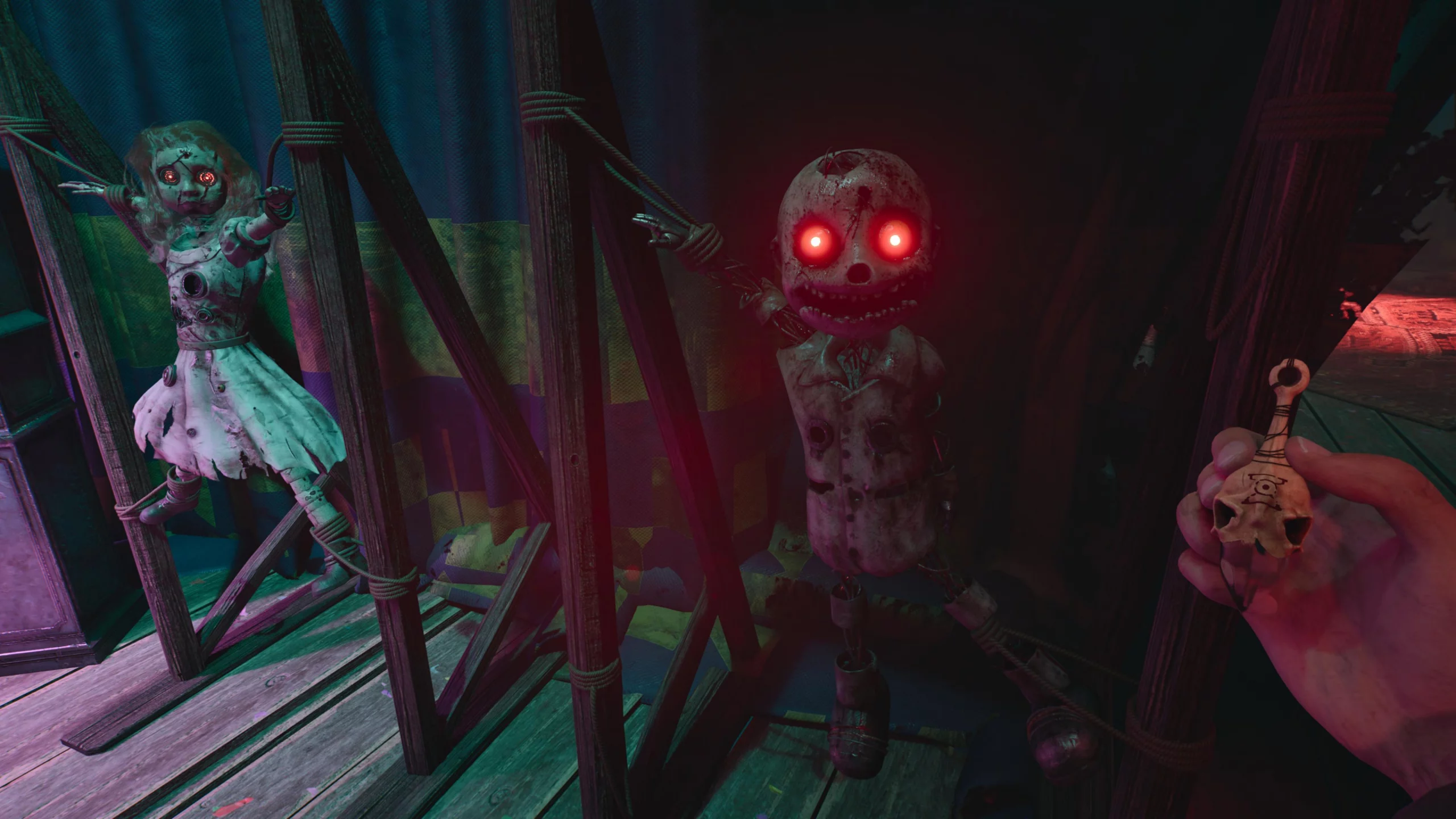 Однако, как только игра прибегает к классическим пугалкам, магия рассеивается. Местные скримеры настолько неуклюжи, что вызывают скорее улыбку, чем страх. Враги, несмотря на свой гротескный дизайн (механические куклы, взрывающиеся при контакте, или зловещие клоуны), не вызывают должного ужаса и не могут конкурировать с монстрами из эталонных представителей жанра, такими как Alien: Isolation или Amnesia: The Bunker. Для новичков жанра уровень страха может быть вполне достаточным, но для искушённых игроков The Occultist вряд ли предложит что-то, от чего перехватывает дыхание.
