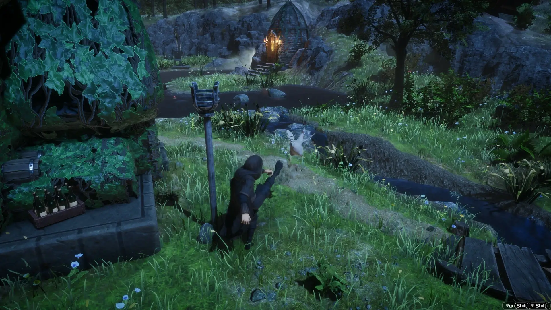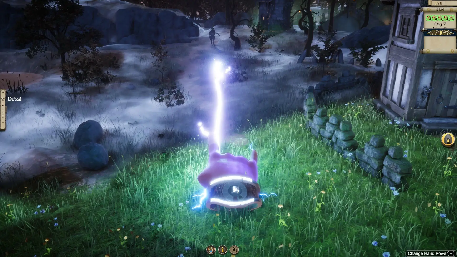 Игра стартует в лучших традициях Fable. Ваш закутанный в плащ персонаж бредёт по туманному лесу, находит заброшенную деревню — и да, вам сразу же дают пнуть курицу. Она летит, квохчет, и вы понимаете: Молиньё не изменил себе. Дальше — склеп, древний трон, волшебная корона. Вы садитесь — и ваше тело больше не нужно. Вы возноситесь в небо, превращаясь в бога с видом сверху. Классическая схема: теперь вы огромная рука, которая может швырять валуны, хватать людей и плеваться молниями.