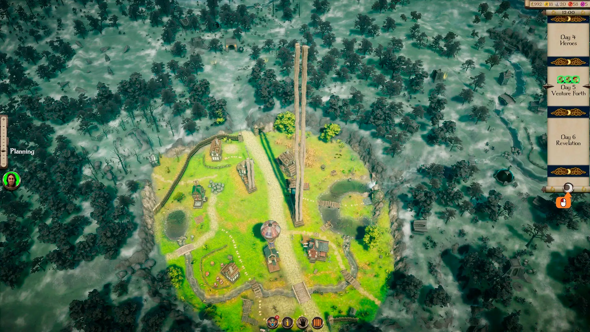 Защита — ещё один столп геймплея. Вы ставите баллисты, катапульты, прочие стреляющие штуки. И они… иногда работают. Башня может смотреть прямо на врага, но не стрелять. То ли обзор блокируют другие здания, то ли баг, то ли просто настроение плохое. Вы не можете положиться на ПВО. Приходится постоянно мониторить.
