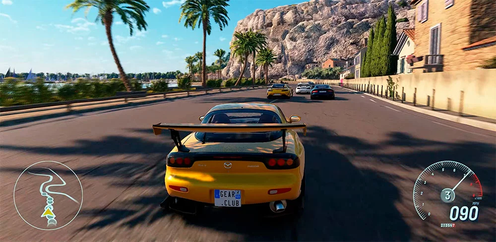 Но на этом сходство заканчивается. В отличие от TDU, новый Gear.Club не предлагает открытого мира. Гонки проходят на замкнутых трассах, проложенных по живописным дорогам. В эпоху тотального засилья open-world это даже освежает — кольцевые аркады в духе Project Gotham Racing сейчас редкость.