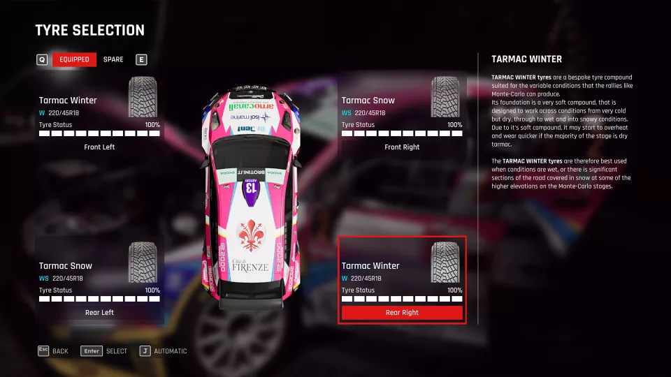 Игрокам придется быть внимательными при выборе резины перед этапом. В ходе теста игра по умолчанию ставила шипованные зимние шины, даже если большая часть этапа была свободна от снега. Правда, это позволило получить преимущество над соперниками... вплоть до первой аварии.
