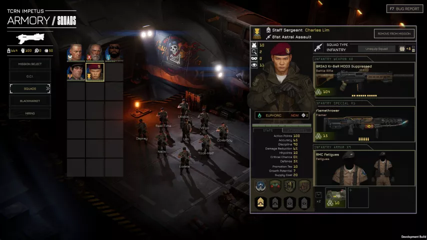 Текущая, уже полностью играбельная версия, включает 50 процедурно генерируемых миссий на трех планетах, четыре вражеские фракции, систему прокачки персонажей и обширные возможности по кастомизации отрядов.