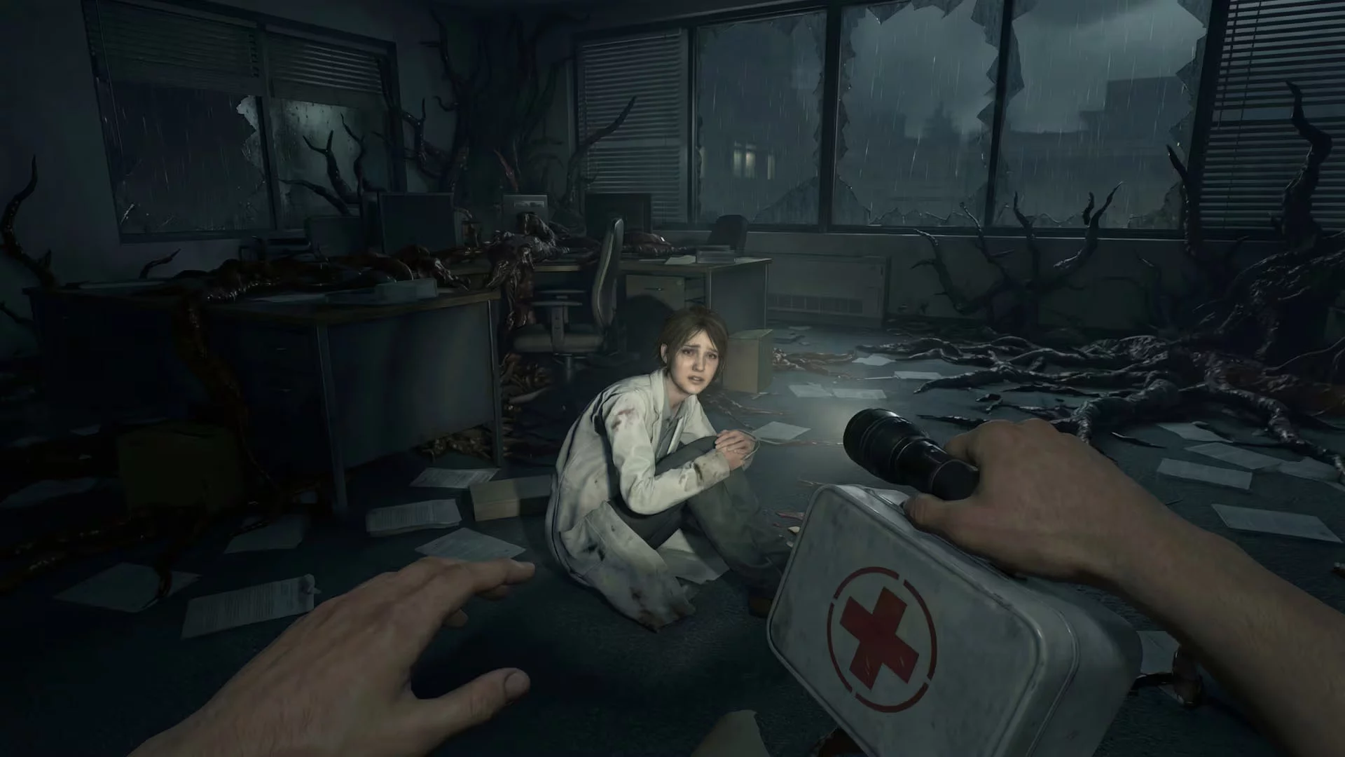 • Спасение и сопровождение выживших: Запертые сотрудники зовут на помощь из-за баррикад и герметичных лабораторий. Среди них есть раненые, есть те, кто привлекает нежелательное внимание. Всех спасенных необходимо физически сопроводить обратно к лифту. Игрок не сможет спасти всех – каждое решение имеет вес.